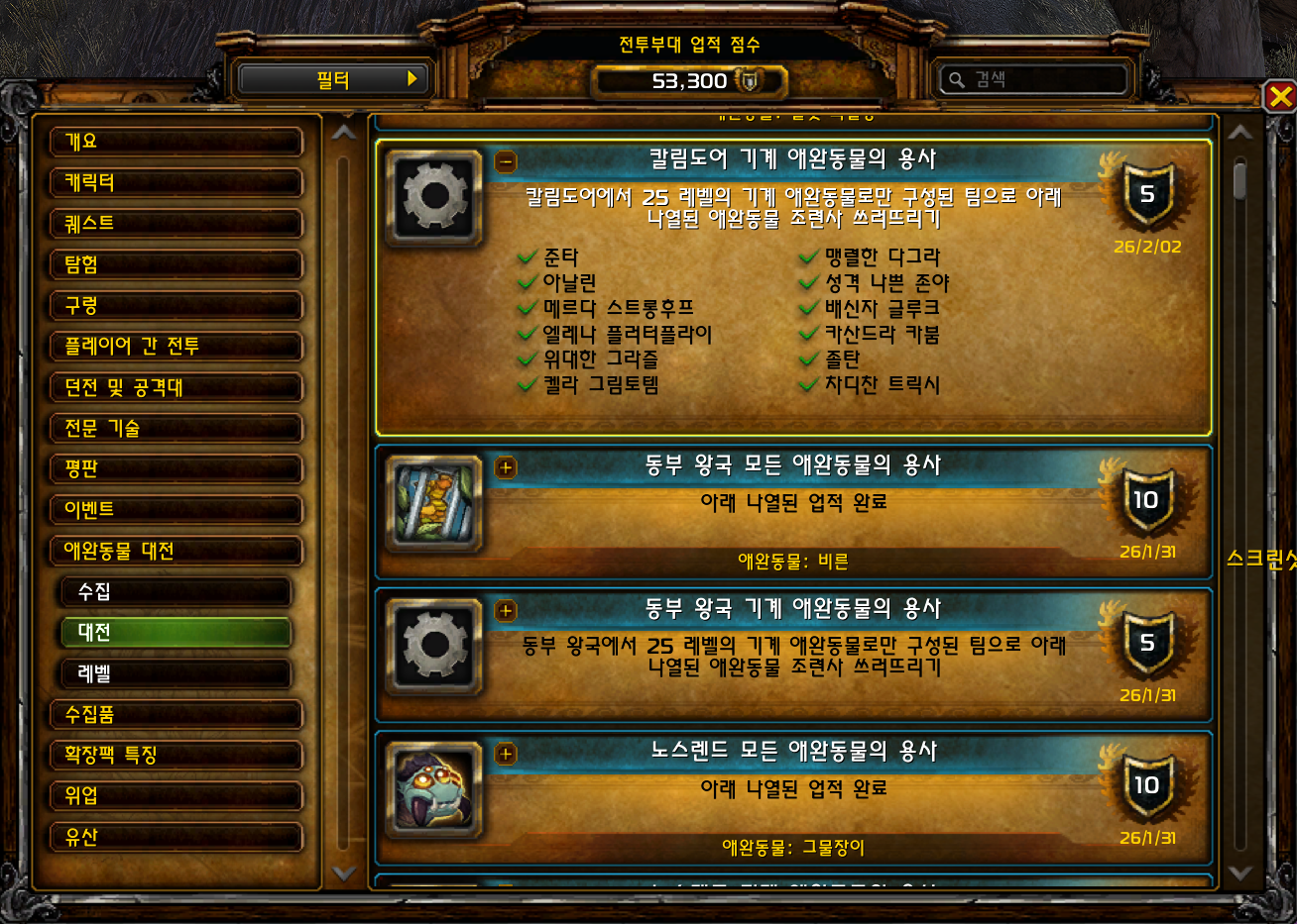 | [와우업적]동부 왕국 모든 애완동물의 용사 (0) | 2026.01.31 |