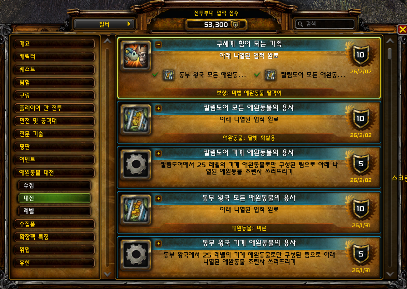 | [와우업적]동부 왕국 모든 애완동물의 용사 (0) | 2026.01.31 |