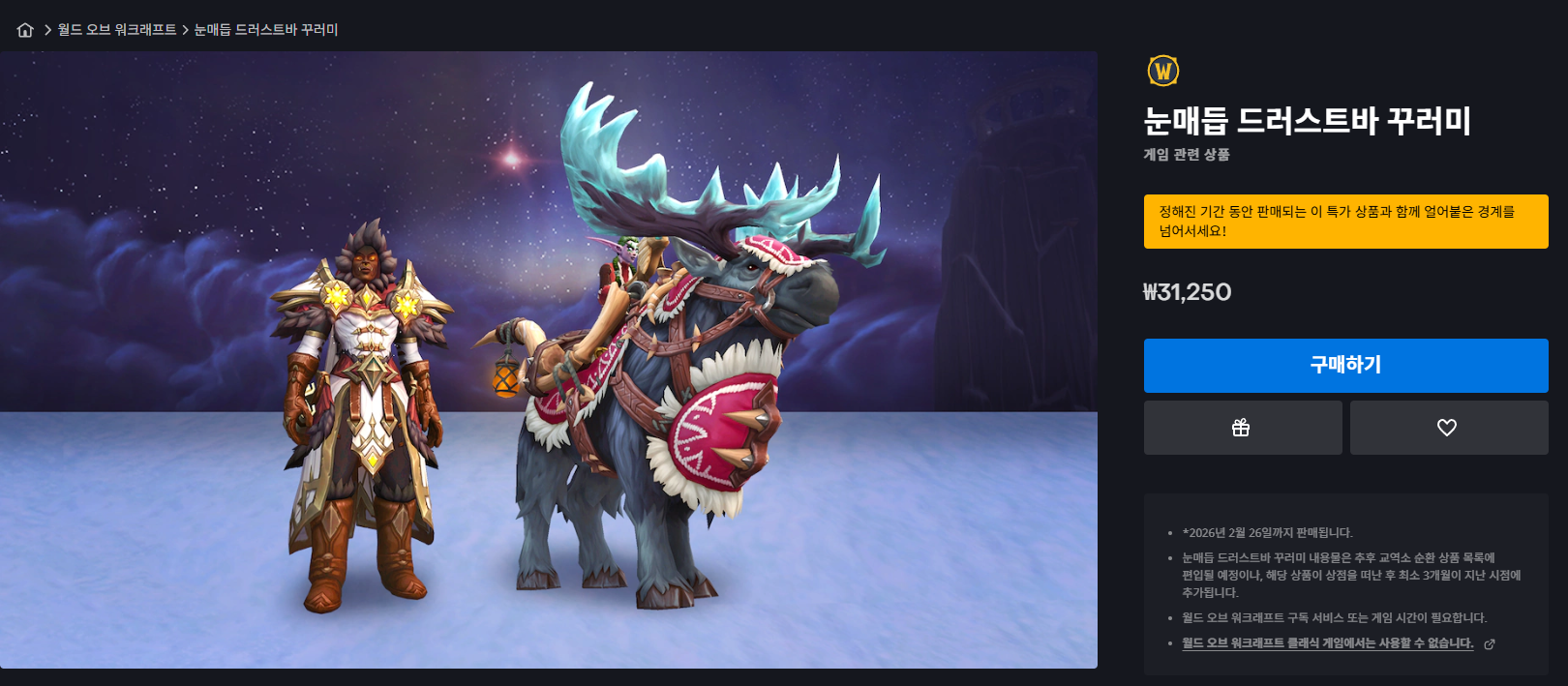 | [와우탈것]진홍빛 늑대 / 눈발톱 옅은빛털 배회자 (0) | 2026.02.09 |