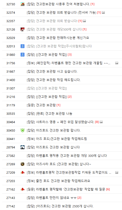 추가로 견고한 보관함은 우편이나 두캐릭이 만나서 거래로는 가능한데 경매장에는 판매가 안됩니다.