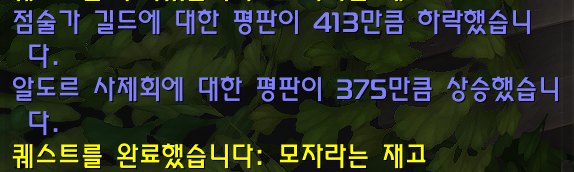 그렇게 1번 or 2번으로 매우적대였던 평판이 중립이 되었으면 그때부터는 원래 알도르사제회랑 점술가 올리던 방법으로 올리면 됩니다.