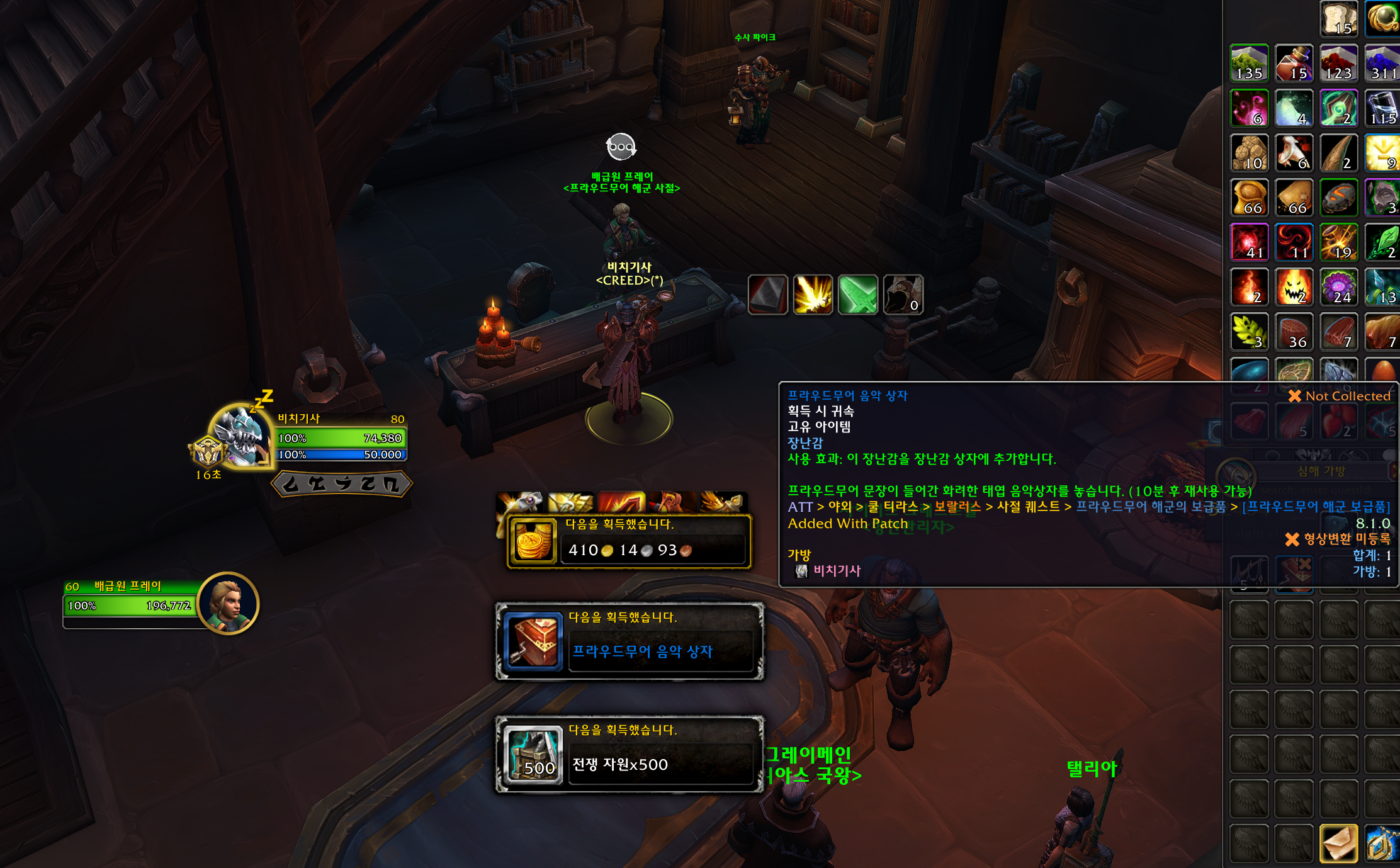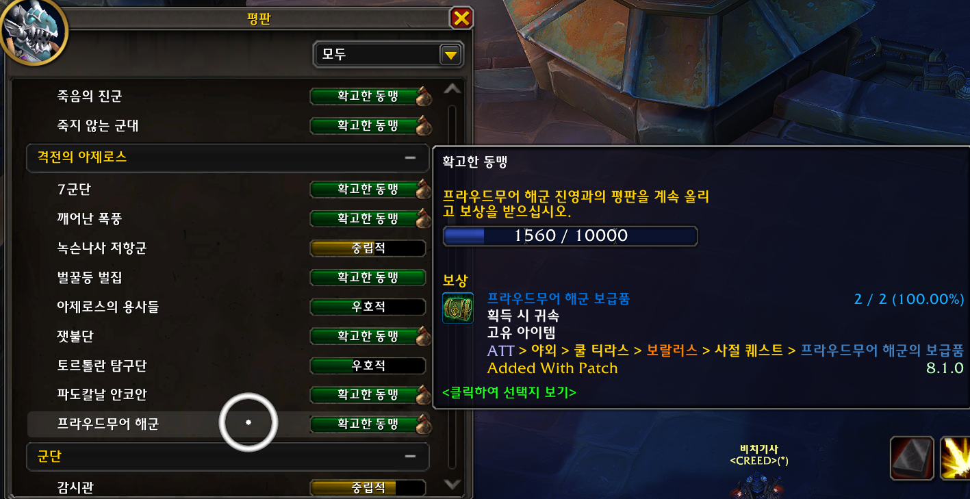 얼라이언스 캐릭으로 프라우드무어 해군 평판을 확고찍은후에 10000 평판을 더 얻을때마다