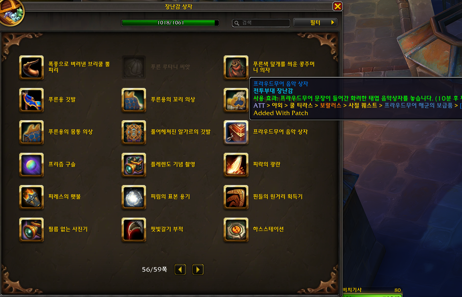 프라우드무어 음악 상자 장난감은 격아 확장팩 장난감으로 얼라이언스만 획득가능한 장난감입니다.