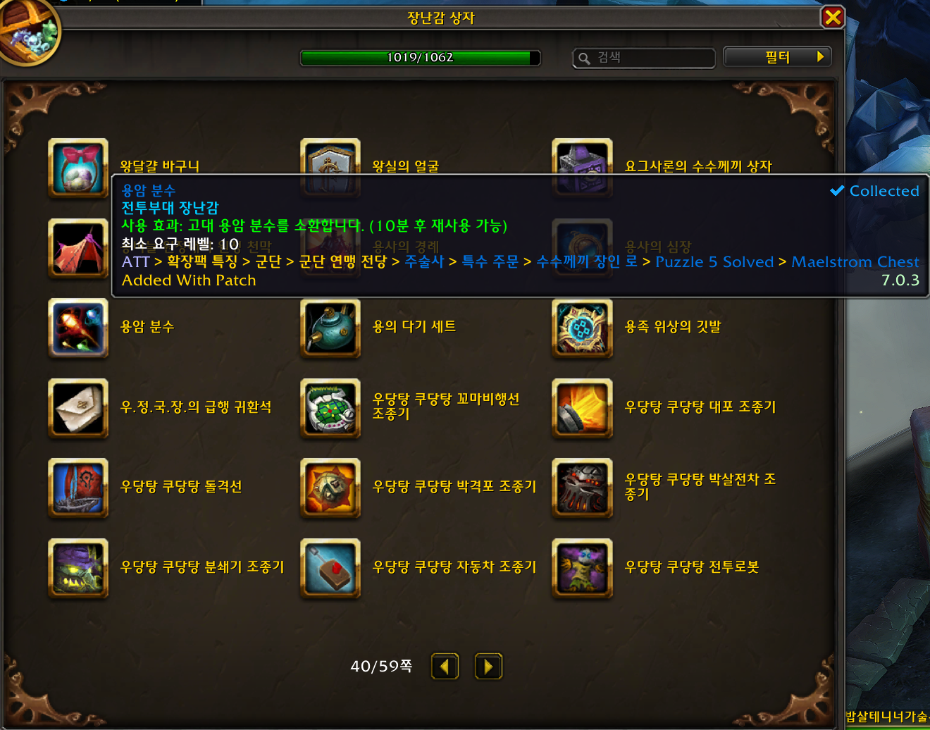 용암 분수 장난감은 군단 확장팩 장난감으로 주술사 캐릭터만 얻을수있는 장난감입니다.
