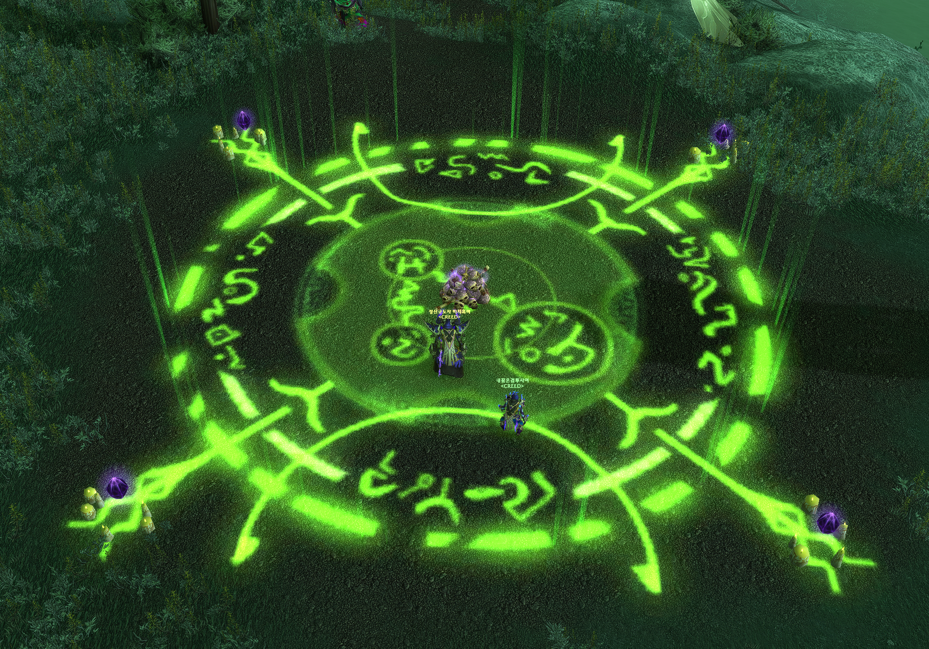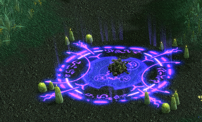 /way 66.28 77.4 초록색 마법진 같은것이 있고 가운데에 해골 더미가 있습니다.