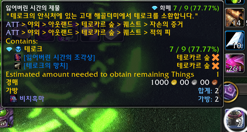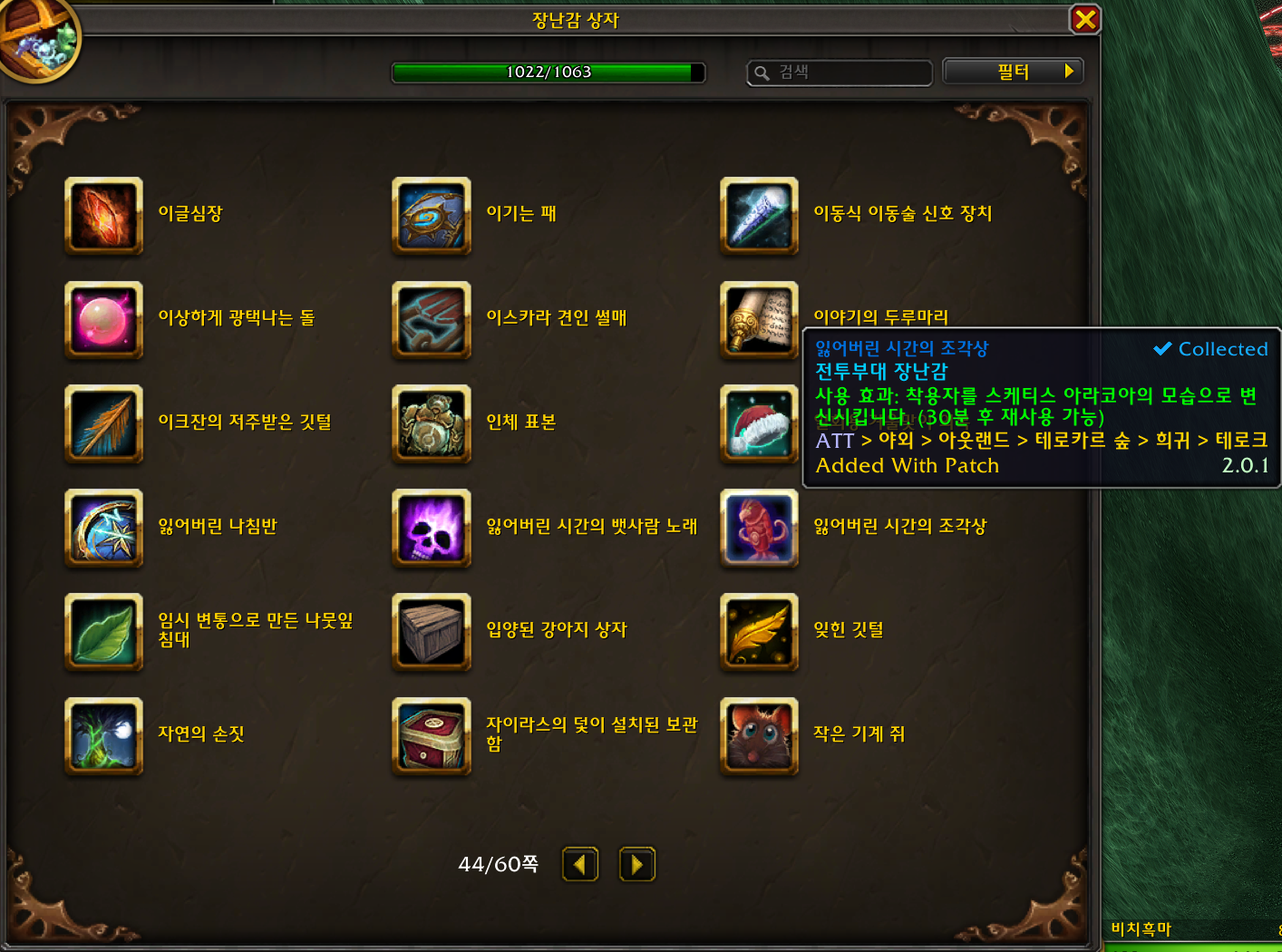잃어버린 시간의 조각상 장난감은 불성 확장팩 장난감으로 테로크를 잡으면 낮은확률로 획득가능합니다.
