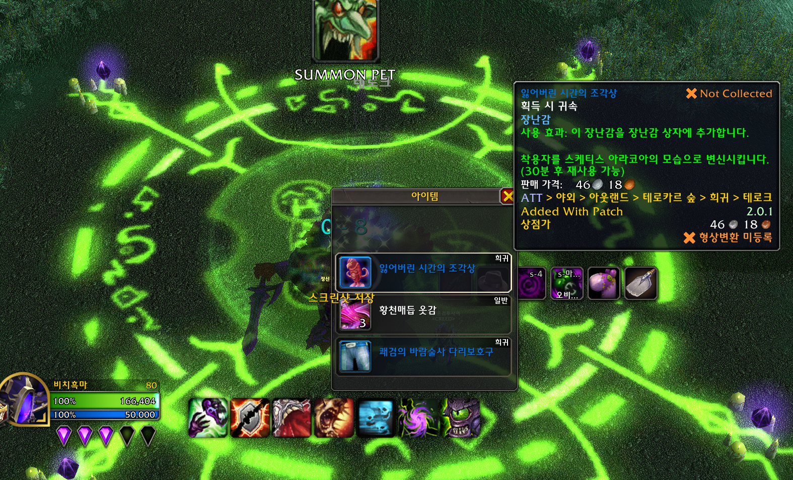 잃어버린 시간의 두루마리10개를 사용해서 아카라이를 소환해서잡고 아카라이의 갈퀴발톱을얻고