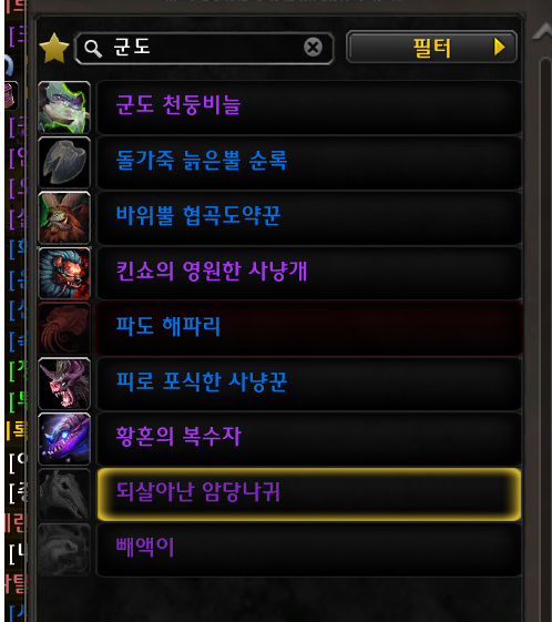 피로 포식한 사냥꾼 탈것은 격아 확장팩 탈것으로 군도탐험으로 획득하는 탈것입니다.