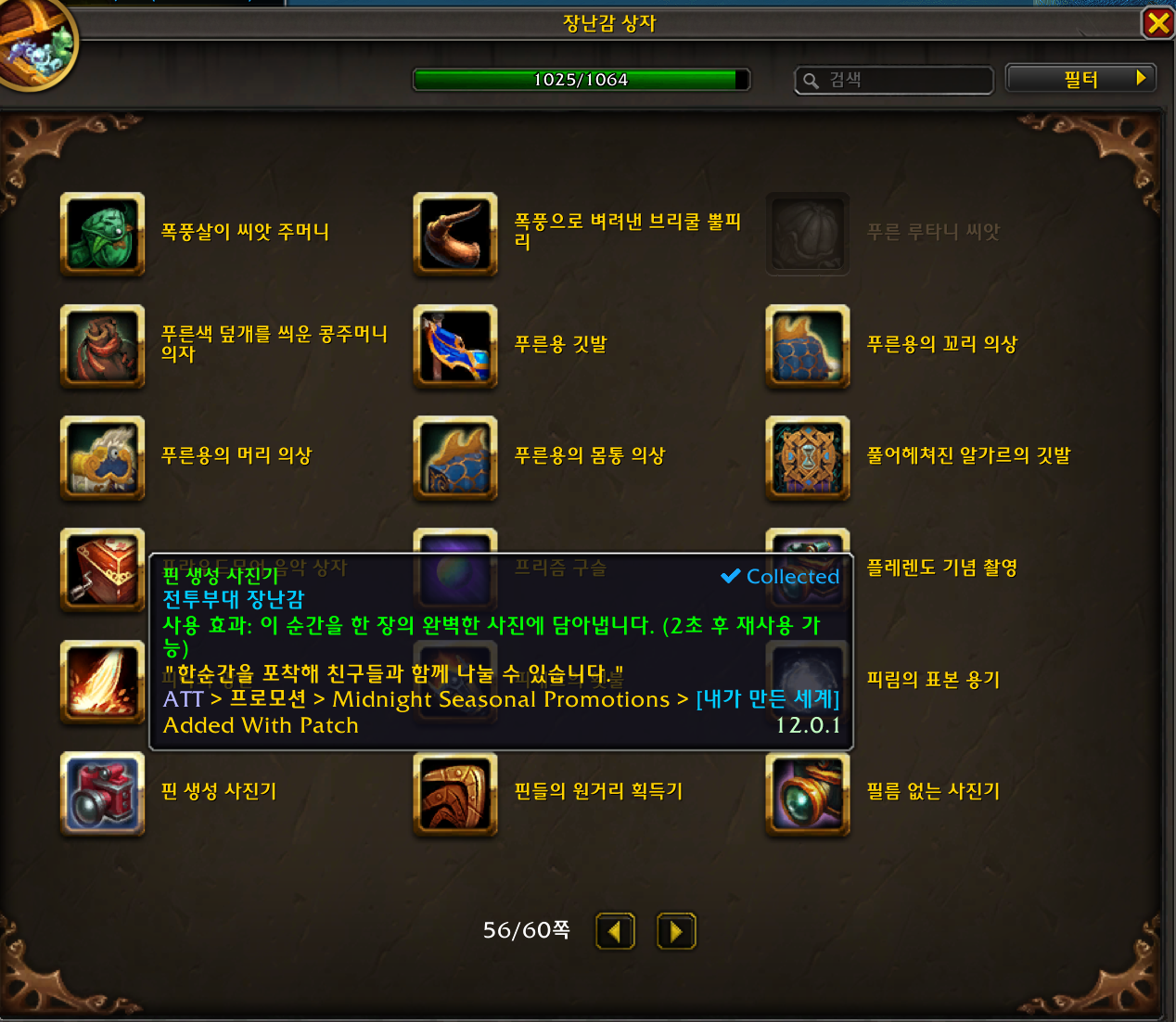2026.02.25 핀 생성 사진기 획득 1025번째 장난감
