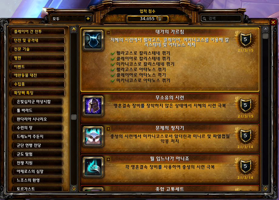 2021.03.15 대가의 가르침 획득 5점짜리 34655점