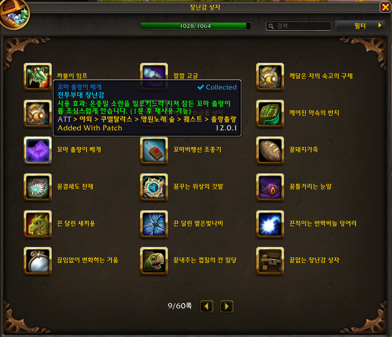 꼬마 촐랑이 베개 장난감은 한밤 확장팩 장난감으로 퀘스트 보상입니다.