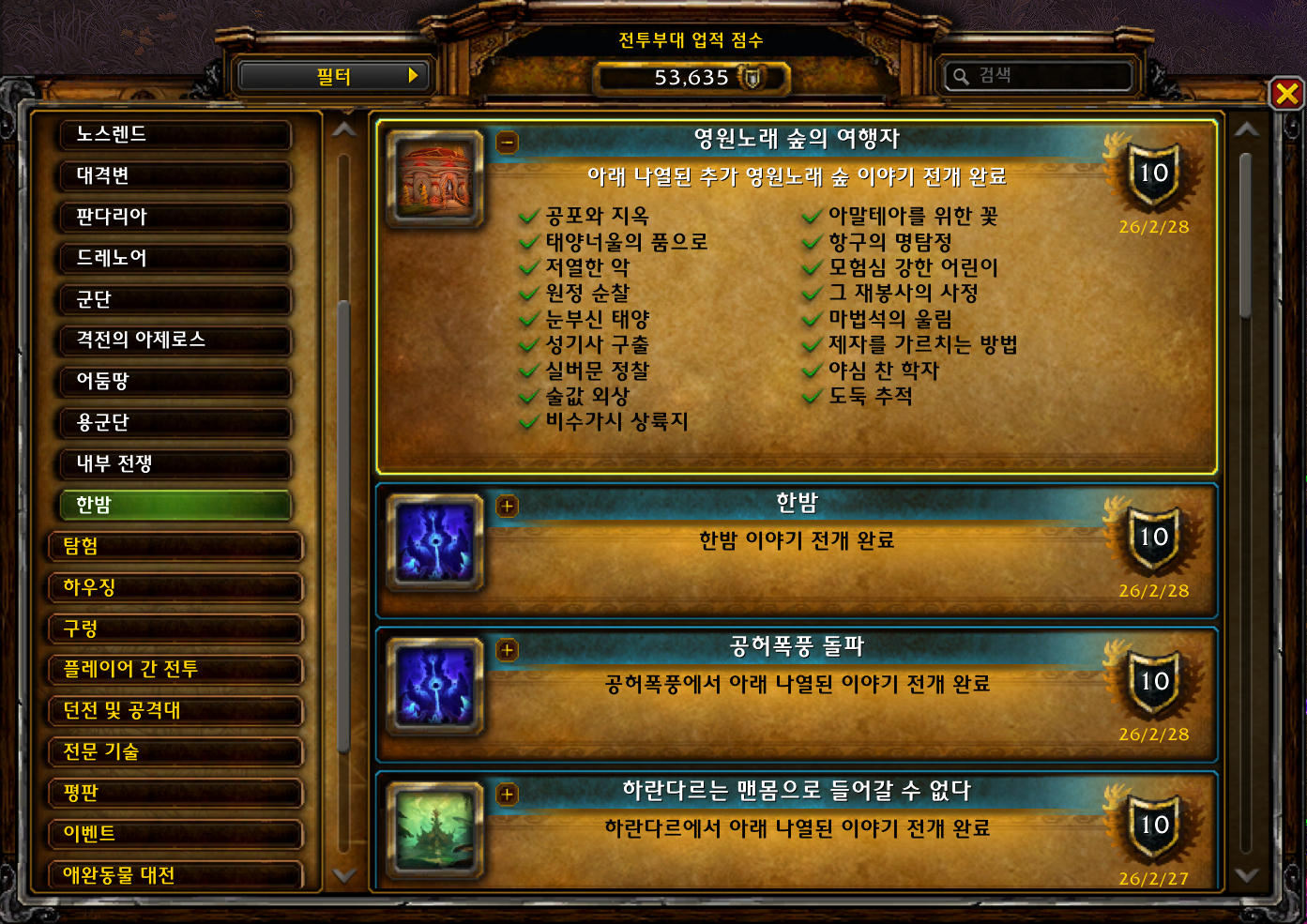 | [와우업적]한밤 - 한밤 모든지역 대장정완료 (0) | 2026.02.28 |