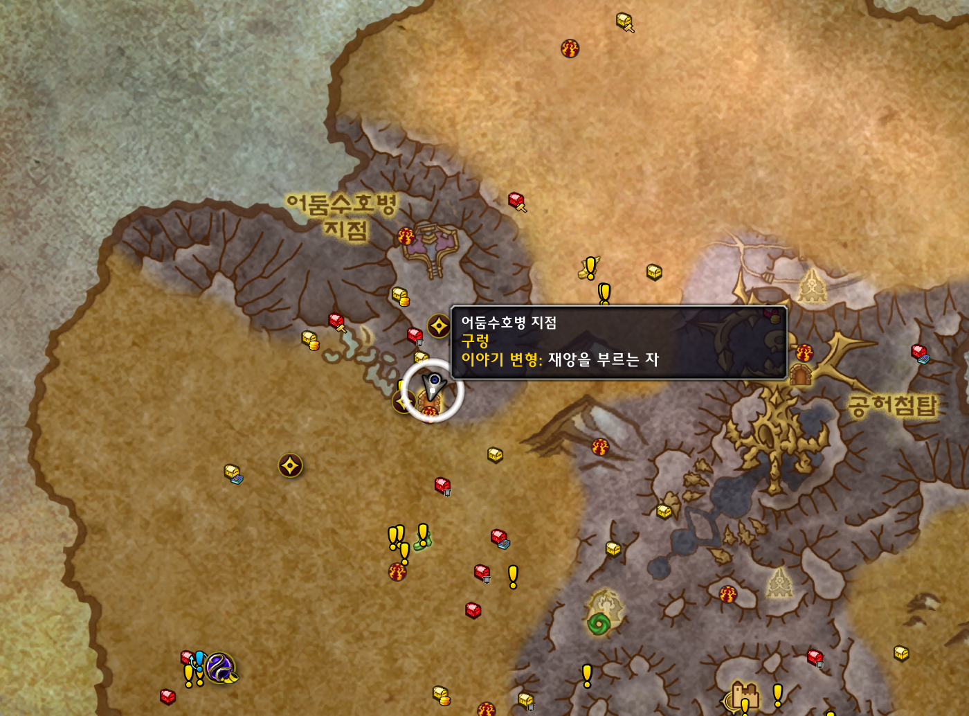공허폭풍에 어둠수호병 지점 구렁에서 몹잡고 나오고 들어가고 반복입니다.
