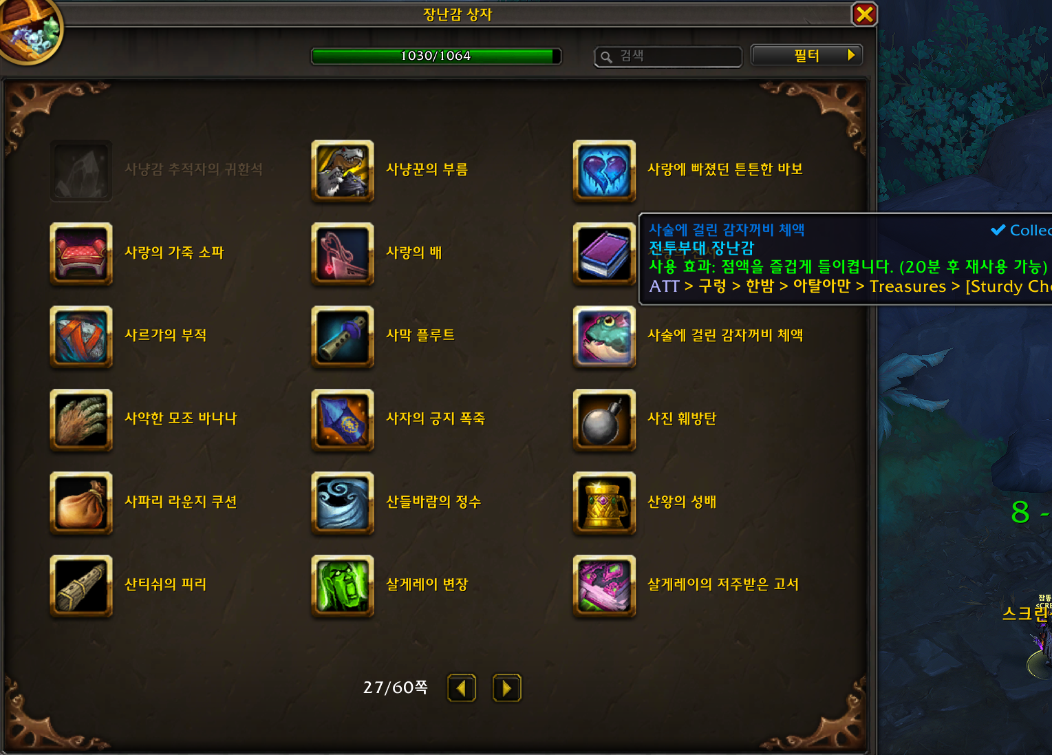 2026.03.04 사슬에 걸린 감자꺼비 체액 획득 1030번째 장난감