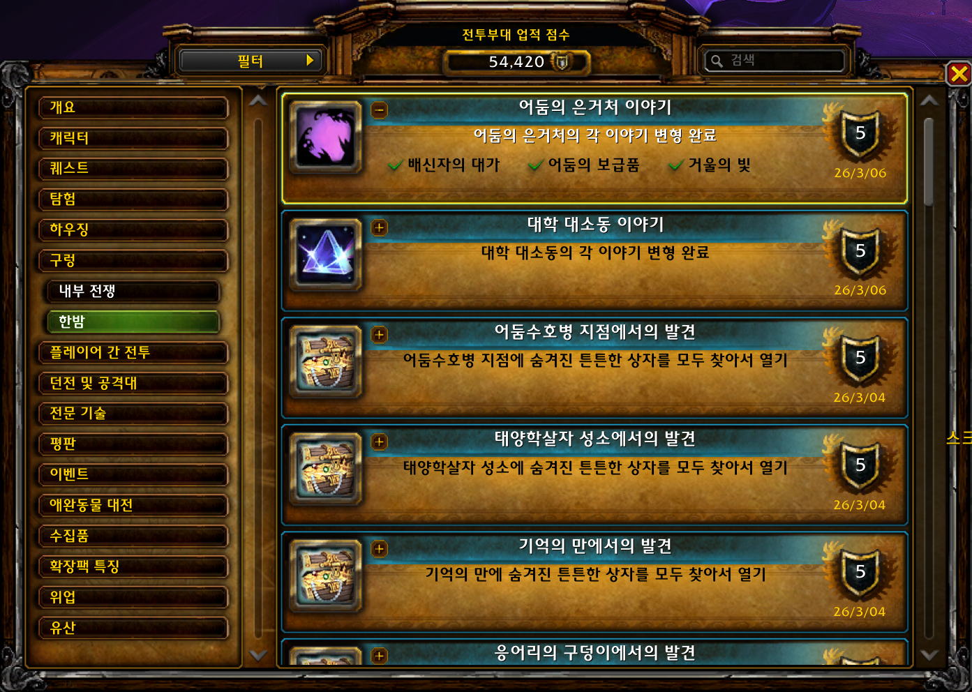 2026.03.06 어둠의 은거처 이야기 획득 5점짜리 54420점