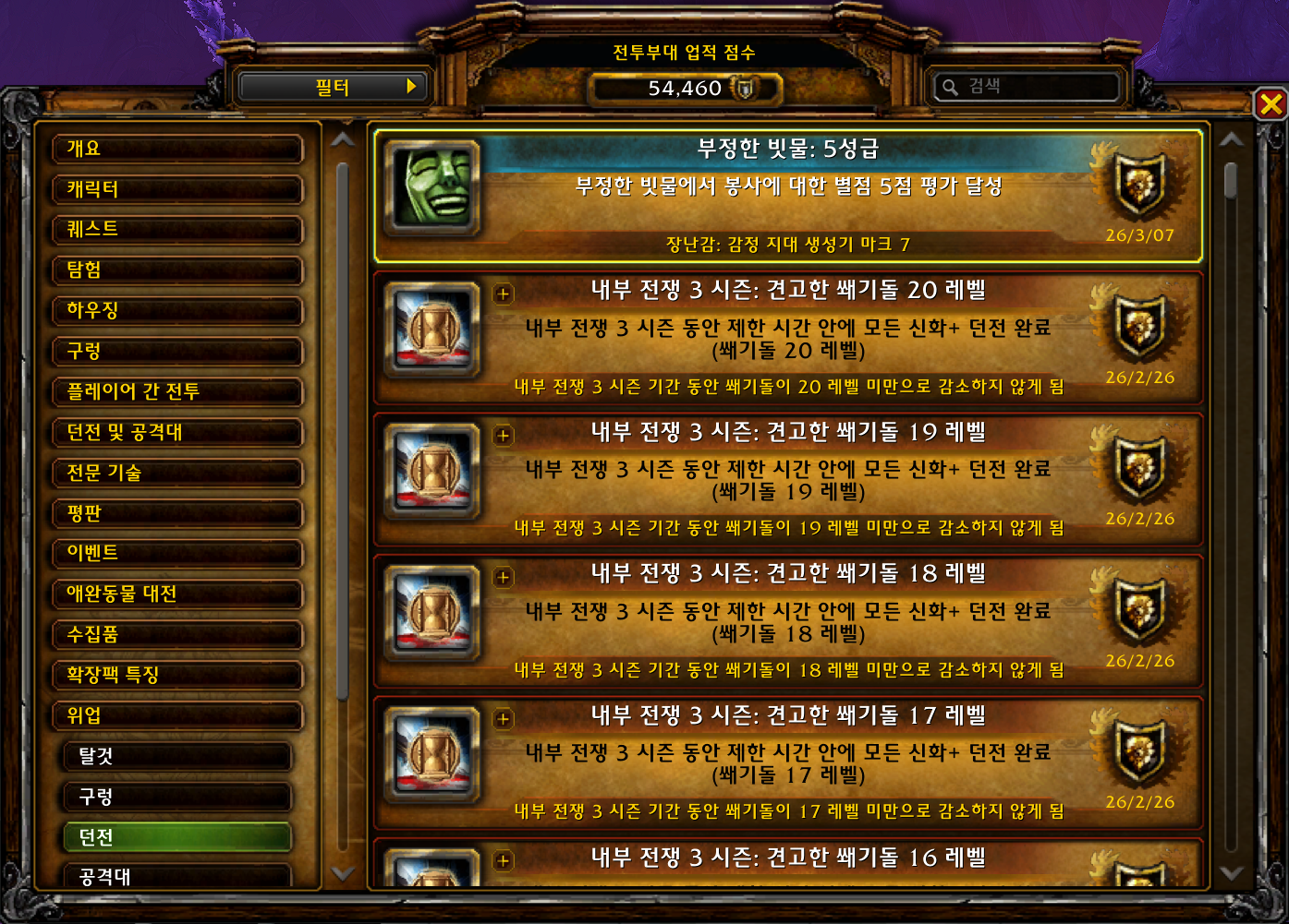 죽음의 골목 던전에서 하고 지금 아직 첫주라 공략이 익숙하지 않으면 실패할수도 있지만 어자피 나중가면 자동으로 되는 업적입니다. 저도 첫번째 캐릭은 실패했는데 2번째 캐릭으로 신던갈때 성공했습니다. 혼자서는 아무리 잘해도 달성불가능해서 파티원들도 잘해줘야 합니다.