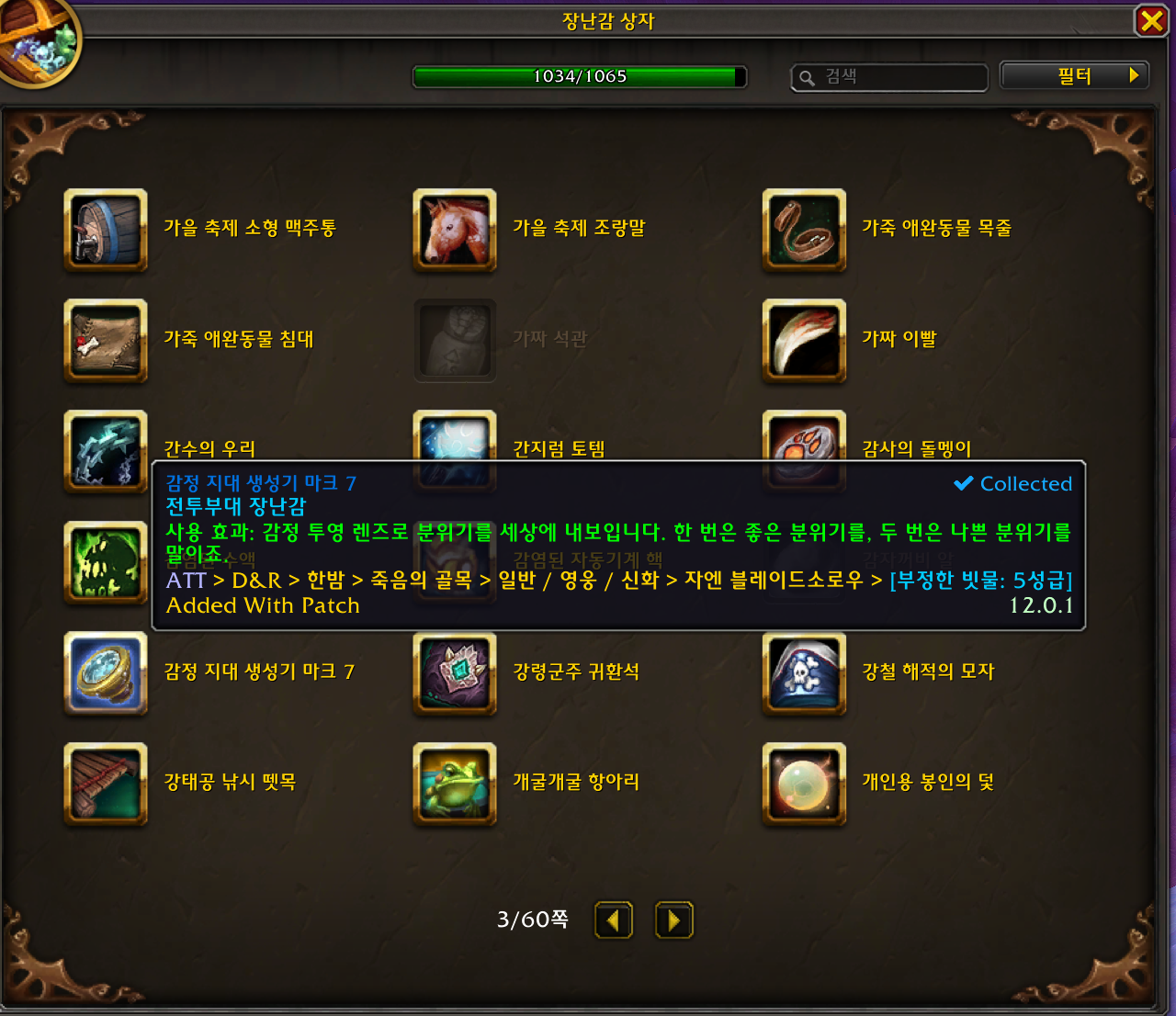 2026.03.07 감정 지대 생성기 마크 7 획득 1034번째 장난감