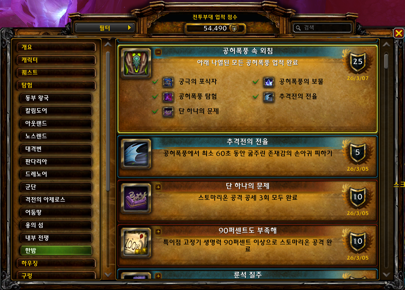 [와우업적]공허폭풍 탐험