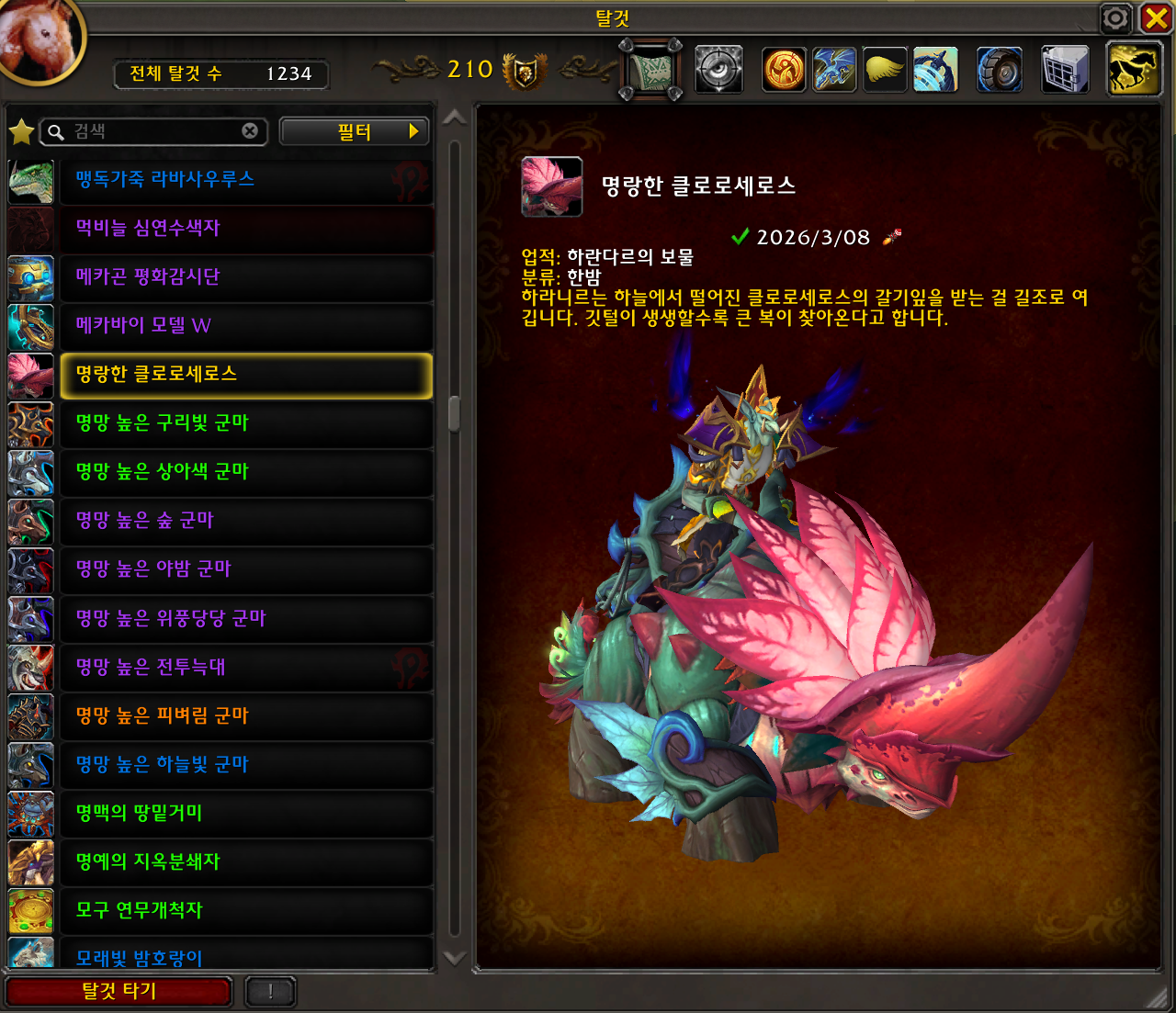 | [와우탈것]선명한 클로로세로스 / 장로 발광진드기 (2) | 2026.03.08 |