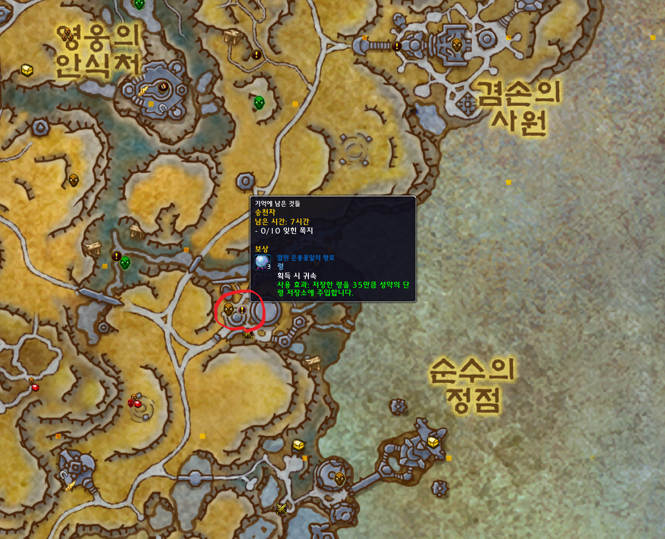 기억네 남은 것들 전역퀘는 승천의보루 4시방향쯤에서 팝업됩니다.