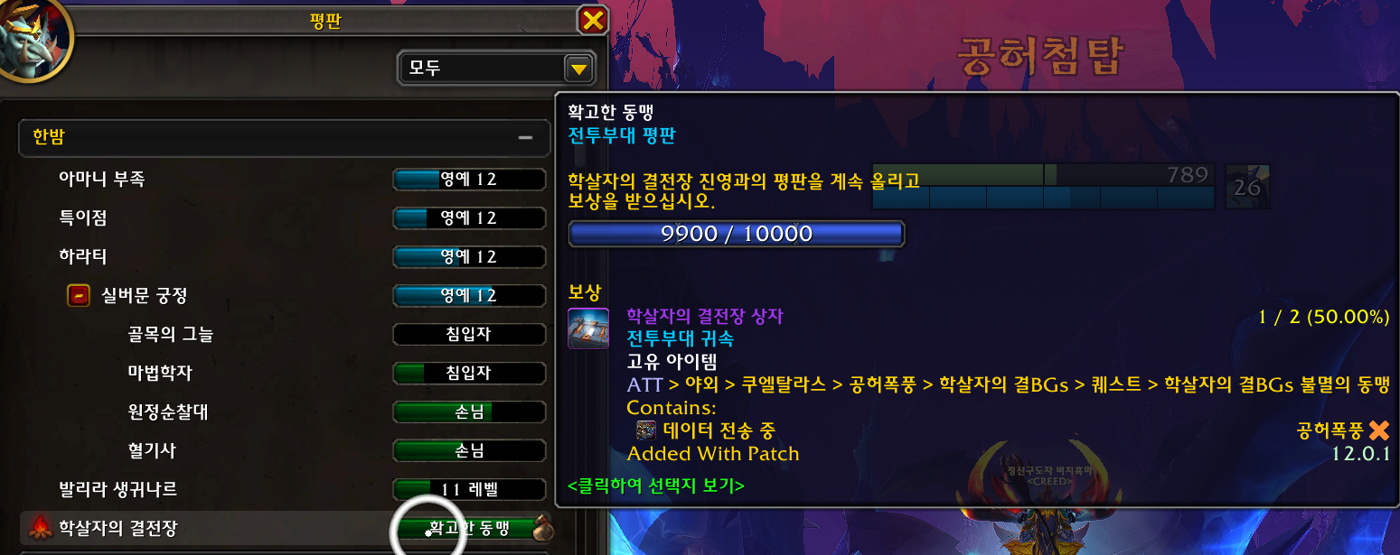[와우평판]학살자의 결전장 평판 올리는법 - 확고후기