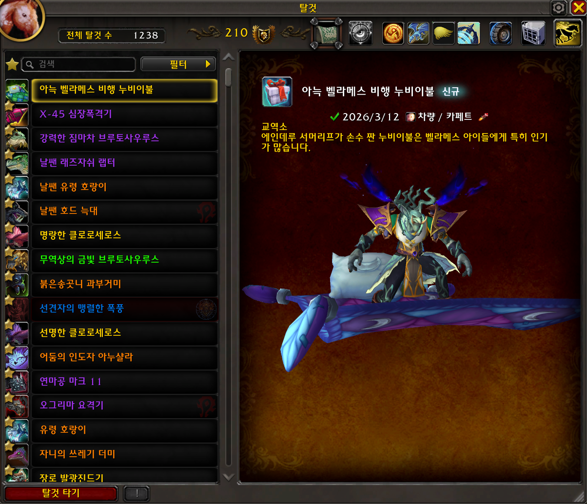 2026.03.12 아늑 벨라메스 비행 누비이불 획득 1238번째 탈것