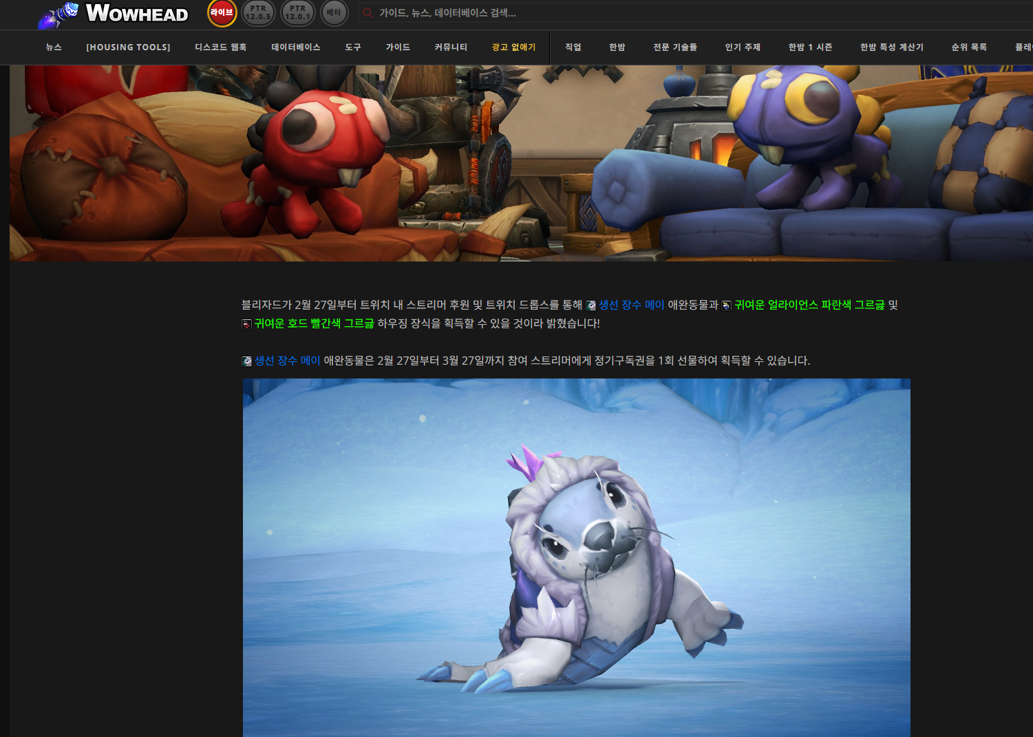 치지직 와우스트리머분들이 펫나눔 이벤트를 합니다. 저는 참여해서 운좋게 받았습니다.