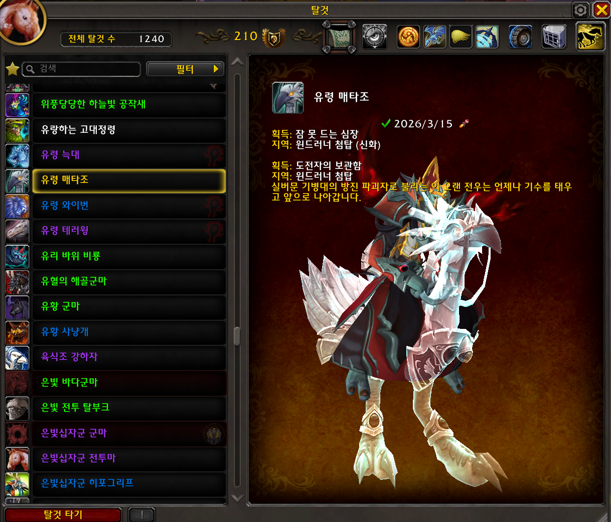 2026.03.15 유령 매타조 획득 1240번째 탈것