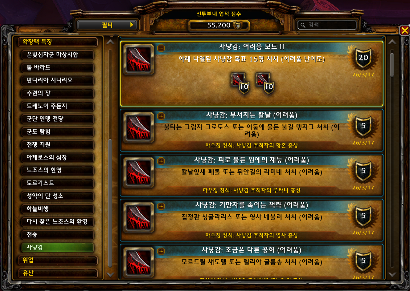 | [와우업적]가장 위험한 사냥감 (0) | 2026.03.11 |