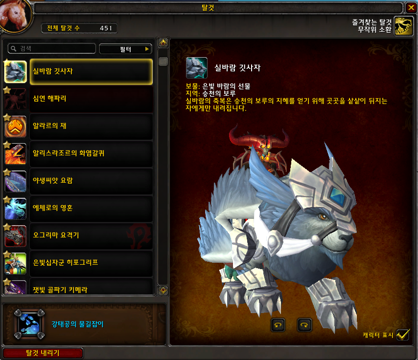 | [와우탈것]영원한 용기의 스라수호기 (0) | 2021.01.06 |