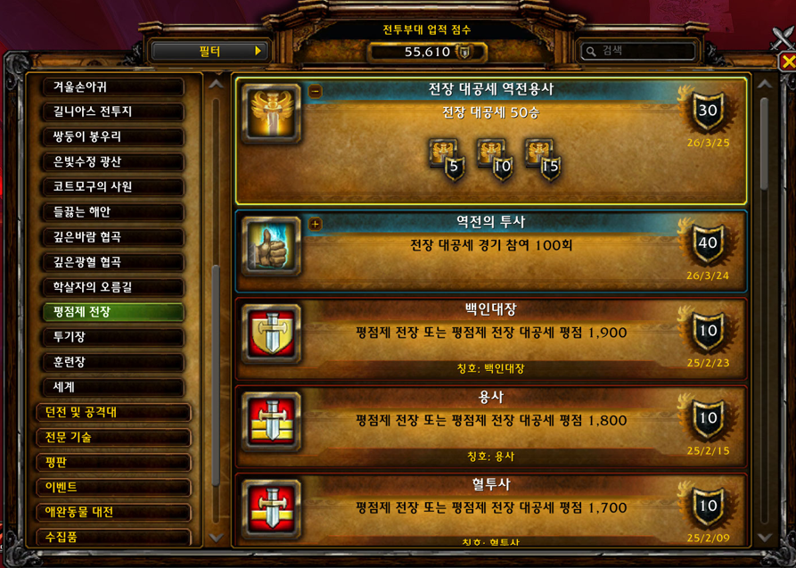 2026.03.25 전장 대공세 역전용사 획득 15점짜리 55610점
