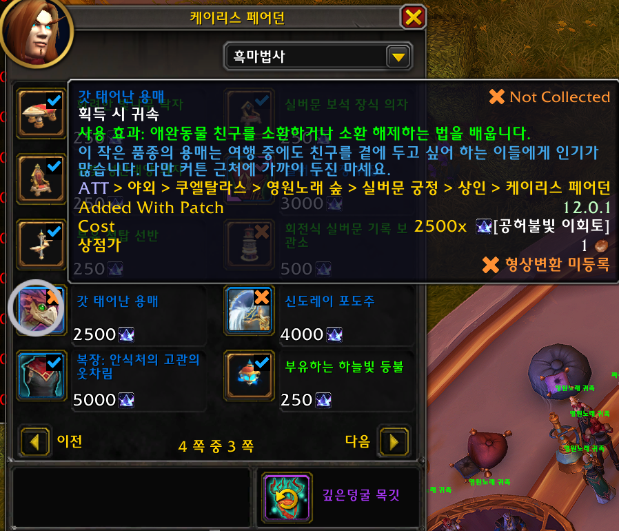 갓 태어난 용매 애완동물은 한밤 확장팩 애완동물로 실버문 병참장교에게 구매하는 애완동물입니다.