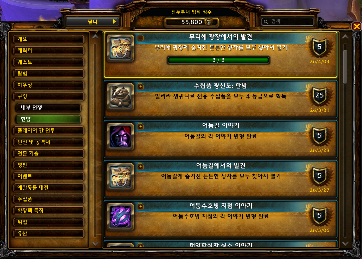 | [와우업적]어둠길에서의 발견 (0) | 2026.03.27 |