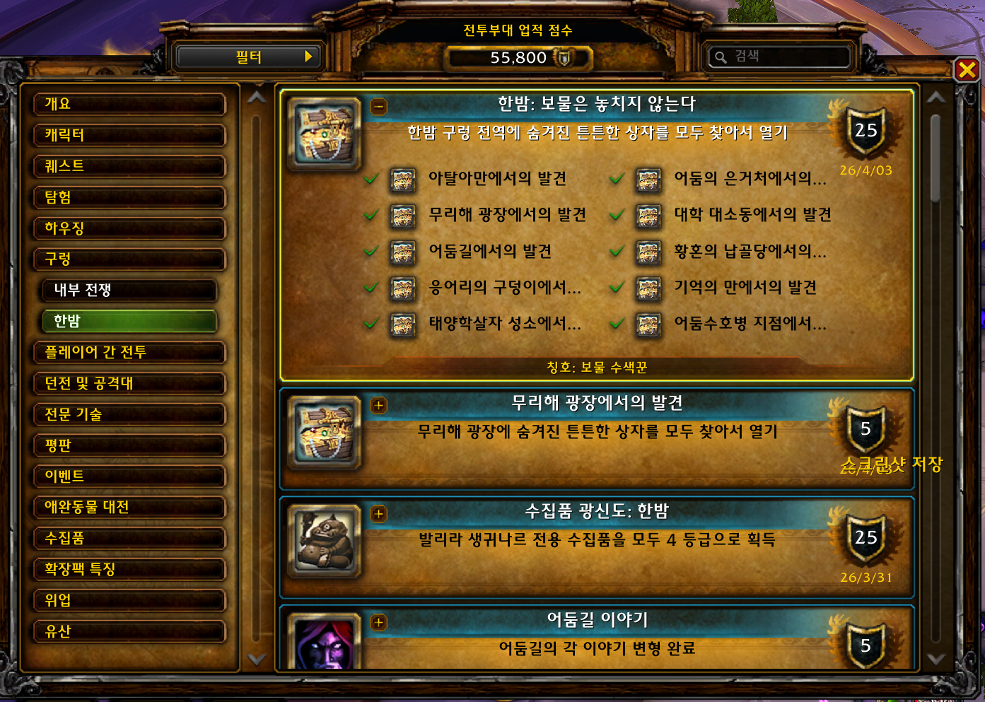 | [와우업적]어둠길 이야기 (0) | 2026.03.28 |