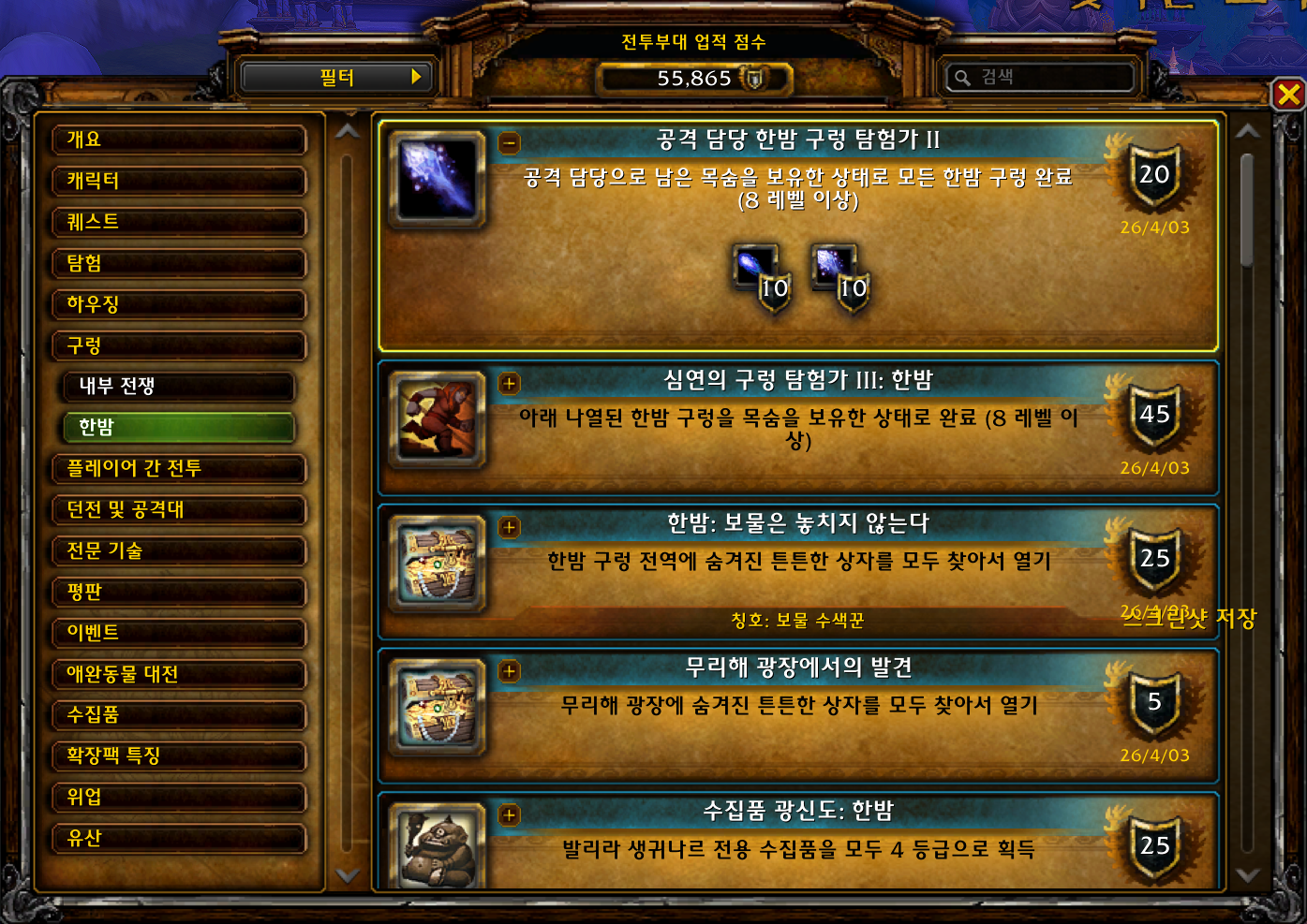 | [와우업적]한밤 구렁 탐험가 (0) | 2026.04.04 |