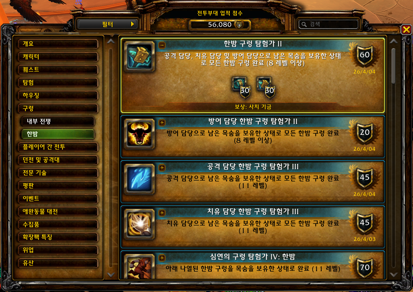 2026.04.04 한밤 구렁 탐험가 II 획득 30점짜리 56080점