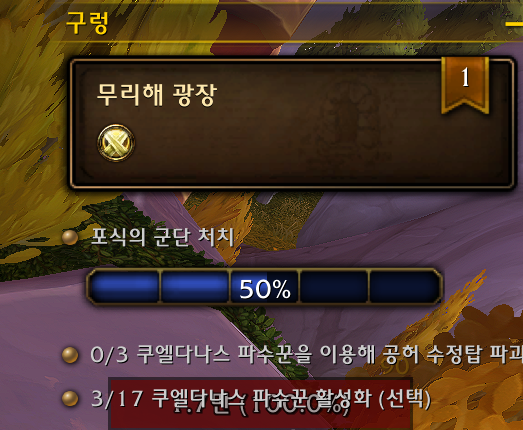 무리해 광장 이야기 업적은 한밤 확장팩 업적으로 무리해 광장구렁은 쿠엘다나스섬에 있는 신규 구렁입니다.