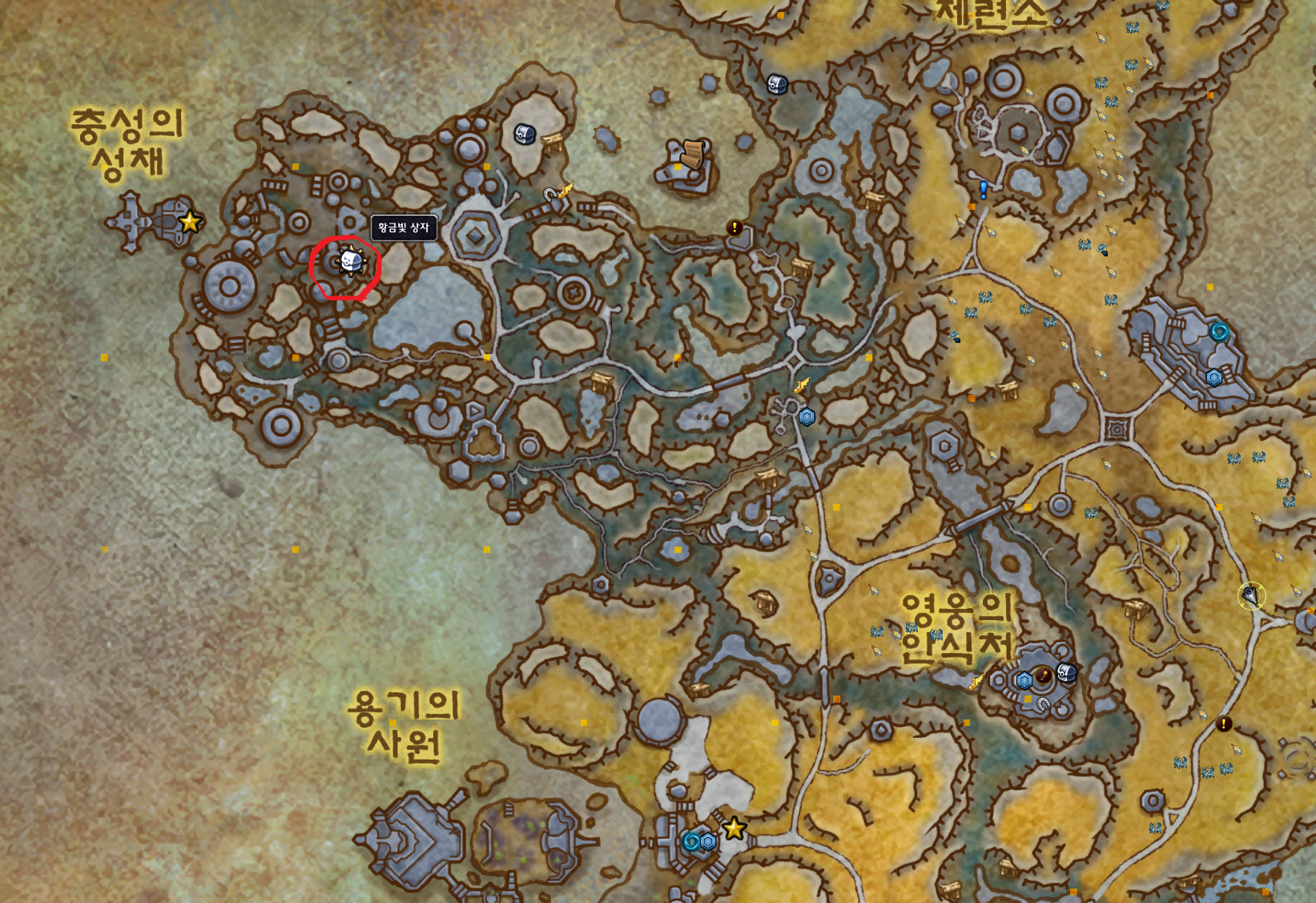 이런식으로 충성의 성채쪽에 황금빛 상자가 젠이됩니다. 항상있는것은 아닙니다.
