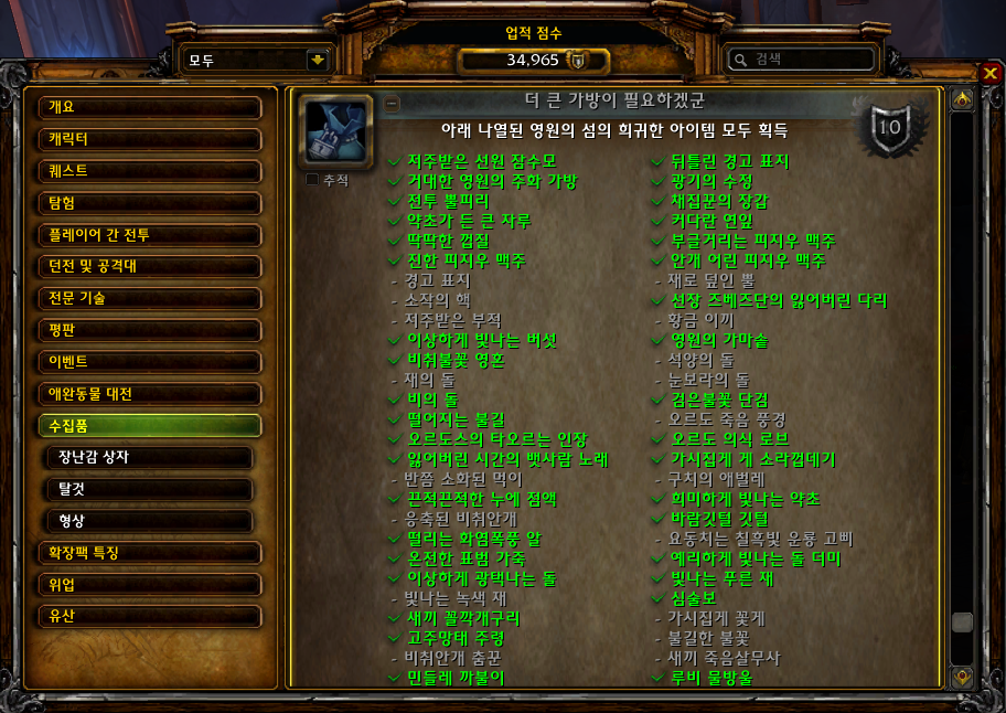 검은불꽃 단검은 더 큰 가방이 필요하겠군 업적중에 하나입니다.