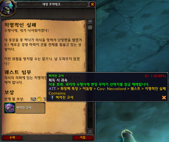 퀘스트를 완료하면 버려진 고서를 획득합니다.