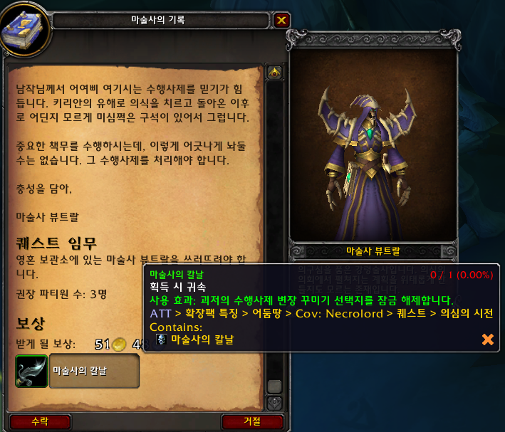 강령군주 캐릭터는 대부분 이상태일 것입니다. 강령군주 대장정중에 버려진 고서 / 마술사의 칼날 / 자줏빛 염료 / 의식술사의 어깨덧옷 4개를 할수 있습니다.