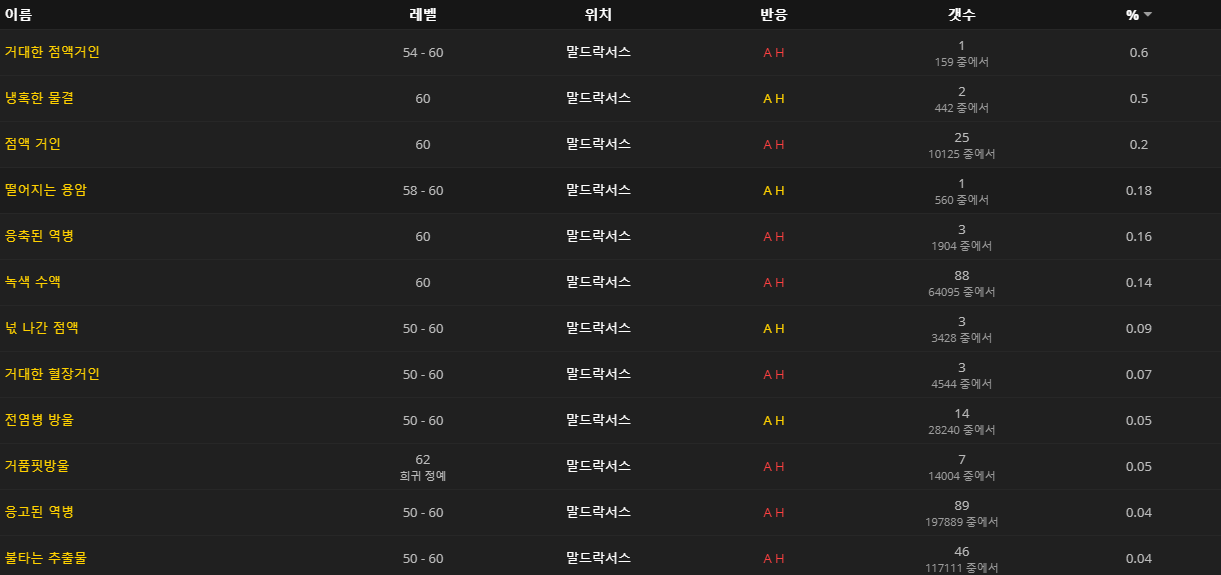 wowhead기준 드랍률은 다음과 같은데 저는