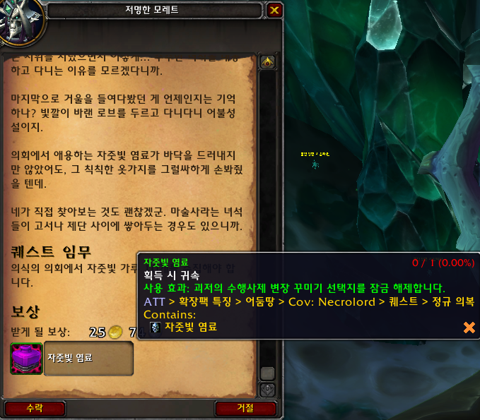 완료하면 자줏빛 염료를 획득 가능합니다.