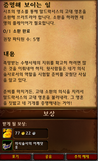 퀘스트를 완료하면 의식술사의 어깨덧옷을 획득합니다.