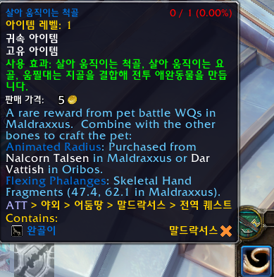 살아 움직이는 척골은 말드락서스 전역퀘를 통해서 획득 가능합니다. 그런데 자주뜨지 않습니다.