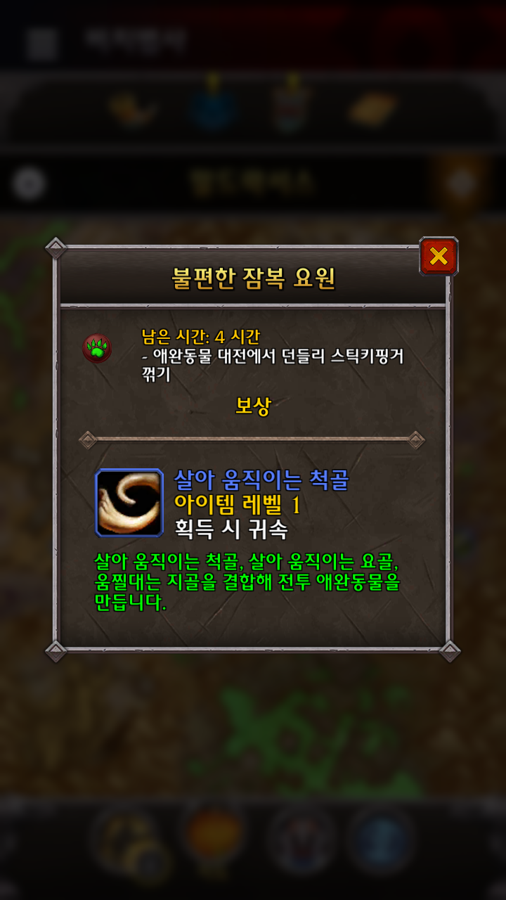 해골 손 파편을 클릭하면 다음과 같이 움찔대는 지골을 획득할수 있습니다.