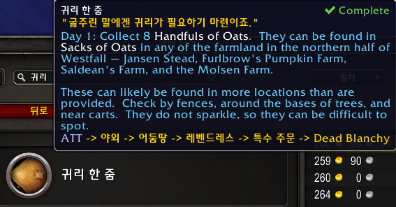 귀리 한 줌은 동부왕국 서부몰락지대 농장에서 얻을수있습니다.