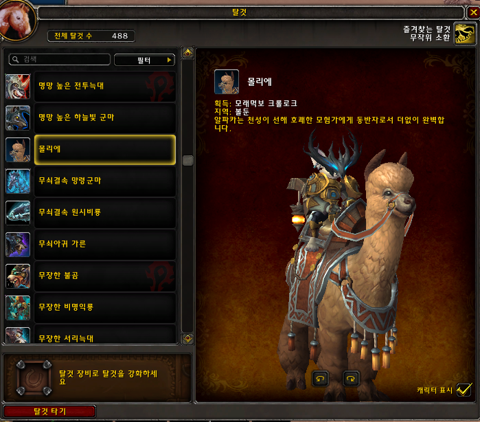 몰리에는 격전의 아제로스 확장팩에서 획득 가능한 탈것입니다.