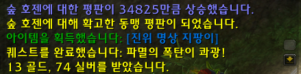 퀘스트를 하다보면 다음과 같이 숲 호젠 평판들이 오릅니다.