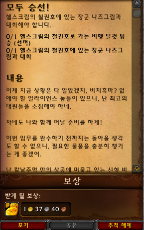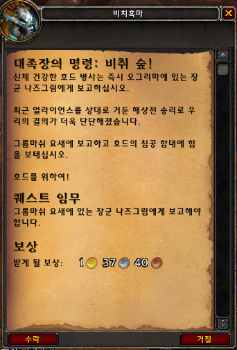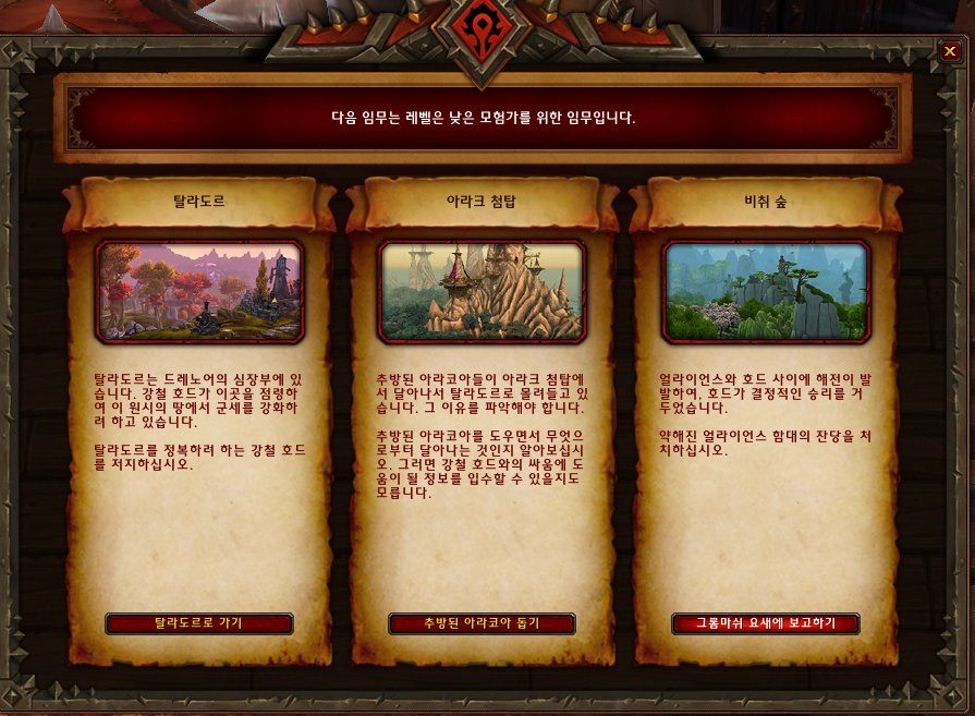 호드기준 그롬마쉬 요새 앞에있는 대족장 게시판을 눌러서
